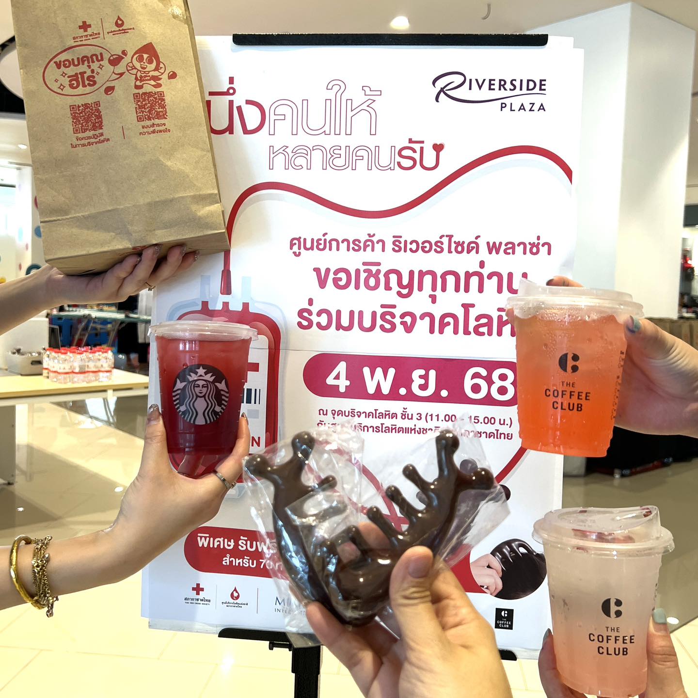 ศูนย์การค้าริเวอร์ไซด์ พลาซ่า ขอชวนชาวฝั่งธนฯ มาร่วมบริจาคโลหิตเพื่อช่วยเหลือเพื่อนมนุษย์ โดยโลหิตที่ได้รับบริจาคจะส่งตรงไปที่ศูนย์บริการโลหิตแห่งชาติ สภากาชาดไทย เพื่อจัดสรรให้กับผู้ป่วยที่ต้องการโลหิตต่อไป